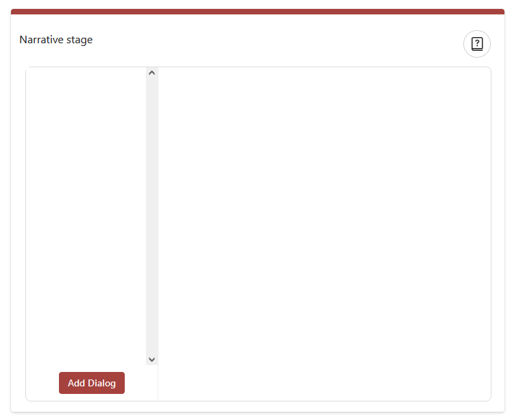 Las fases de narrativa sirven para añadir “guión” a la aventura. Se muestra al jugador una ventana donde aparece texto dicho por alguno de los personajes del juego. Se pueden configurar varias “páginas de diálogo” de manera que un mismo personaje puede decir varias frases, o simular una conversación entre varios de ellos.